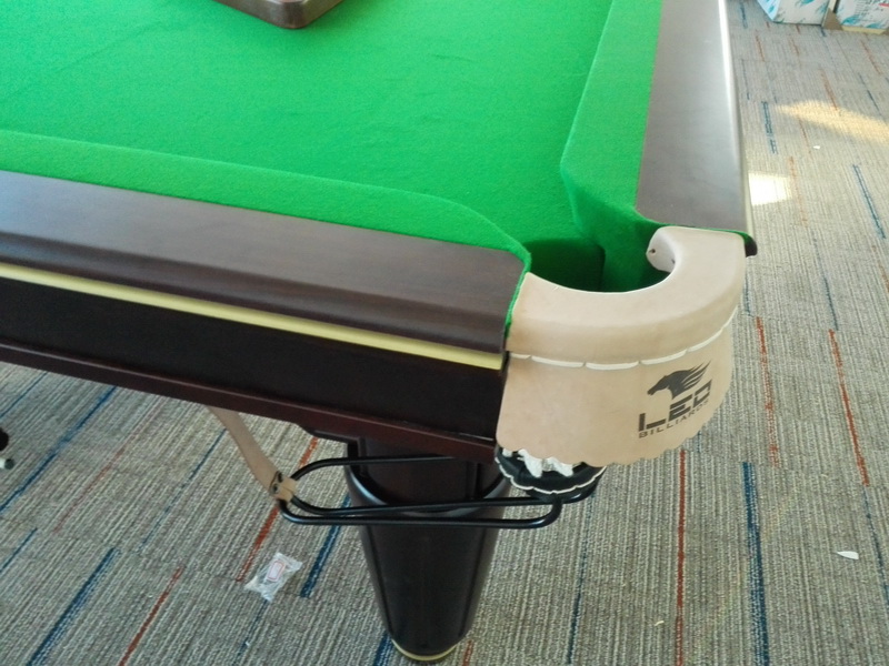 球台配置:进口比利时球、三角架一个、 架杆一支、 球杆架一个、 三头玻璃灯一套、 4支会员球杆、球台盖布、球台毛刷、巧克一盒