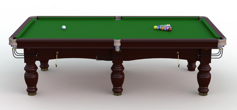 (采用钢库边复合防火板制造的扶手,莱利能量胶条,巴西石板,并使用6811球桌专用呢布,并配有一套比利时亚乐美57mm台球,4支单节球及木质三脚架)。